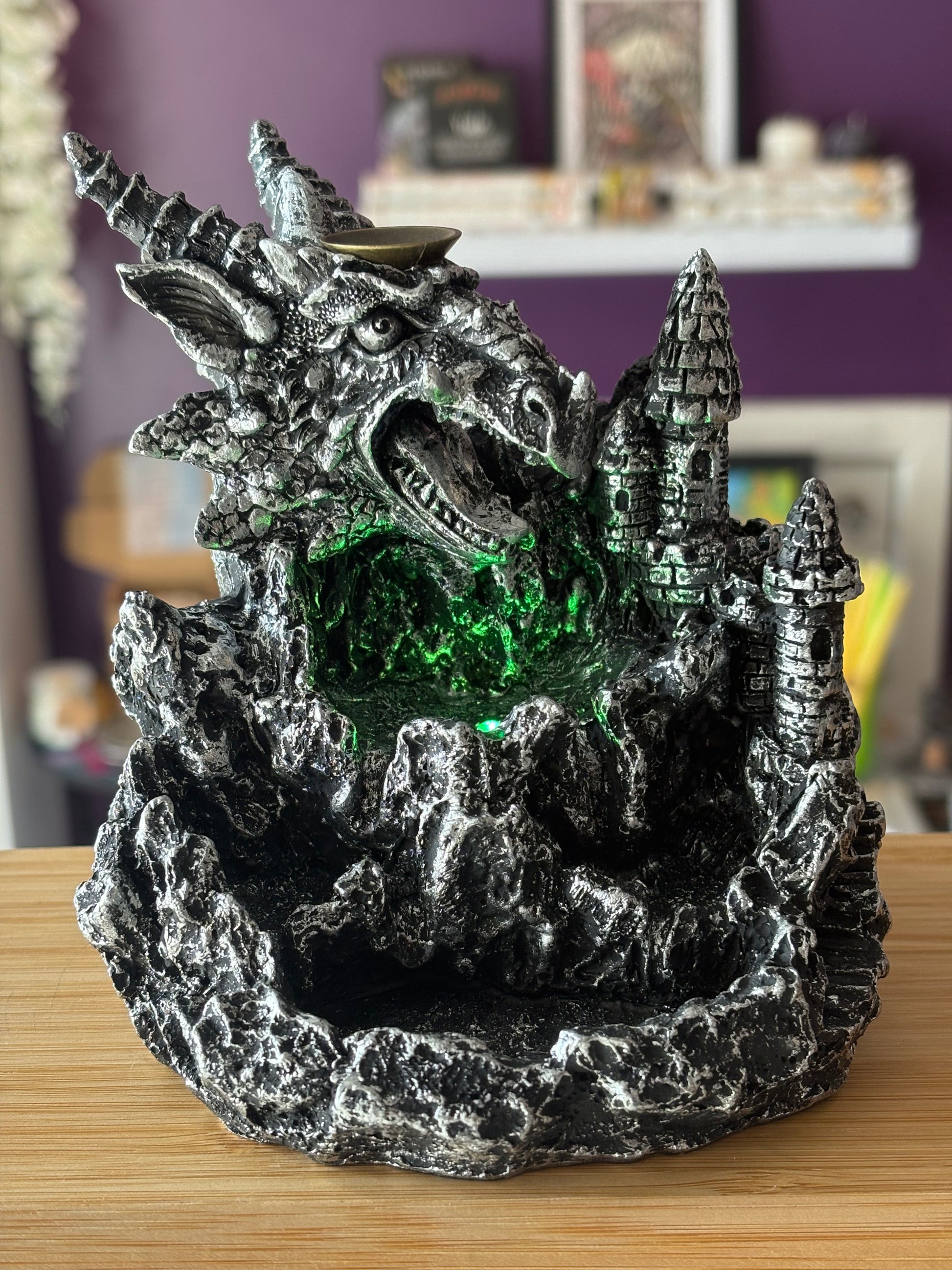 Silver Dragon & Castle Backflow Burner with Light (Multicoloured)